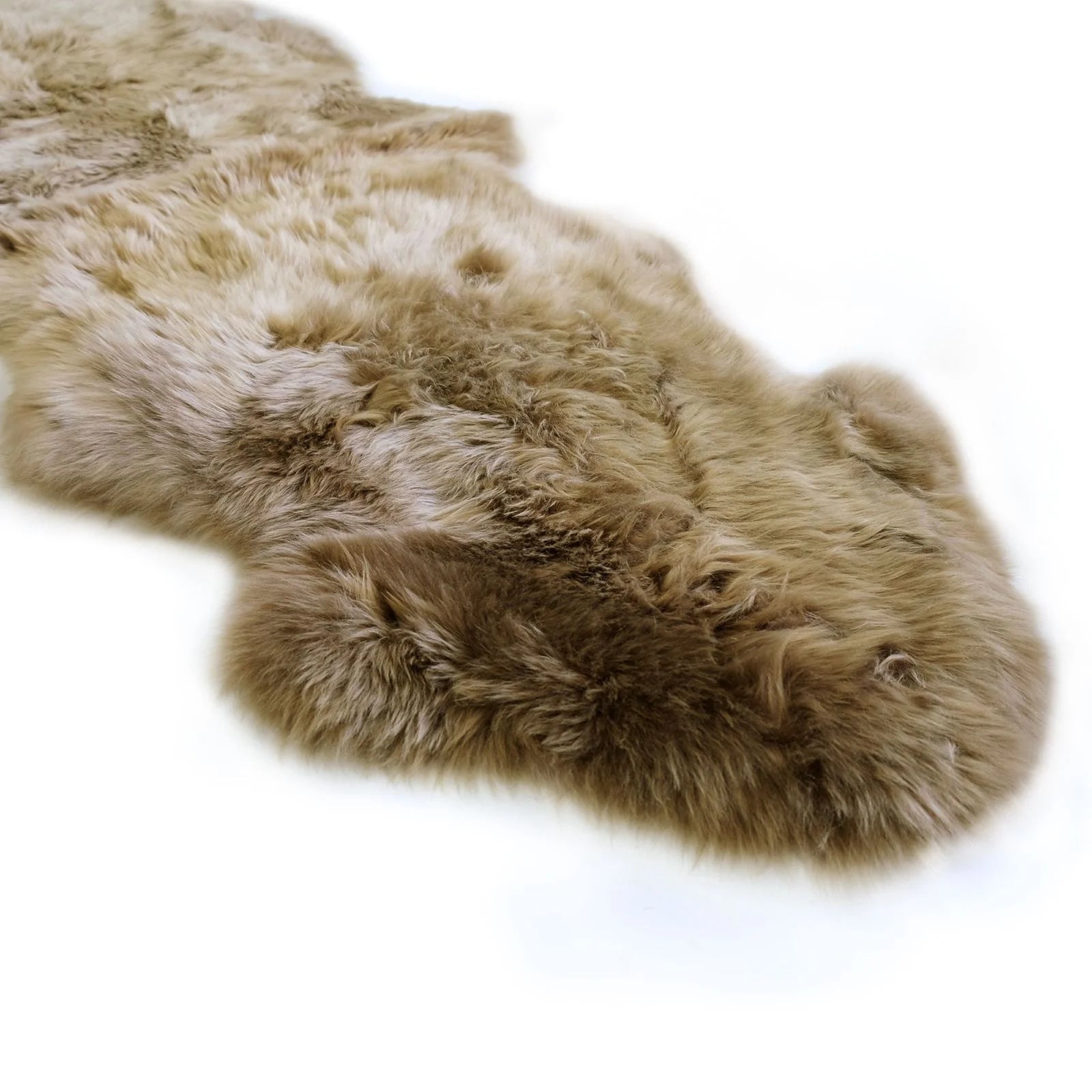 The size of this rug is approximately 180cm length x 65cm wide. We are quite conservative with our sizing, and actual rug may be slightly larger. We measure our rugs from the pelt (leather) side only, and do not measure the wool fibres that extend out, which would increase all dimensions by at least a further 10cm.