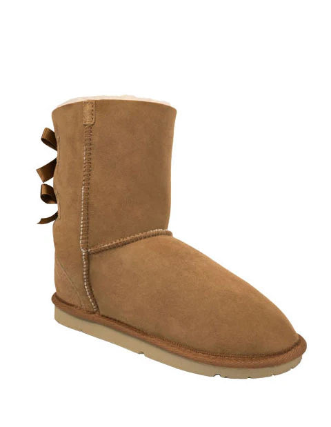 The Arrow Short Boots combine classic UGG comfort with a soft, feminine finish. Made from genuine twin-faced Australian sheepskin and detailed with elegant silky bows, these boots are warm, plush, and effortlessly stylish. Perfect for everyday wear, they complement jeans, activewear, and skirts alike.